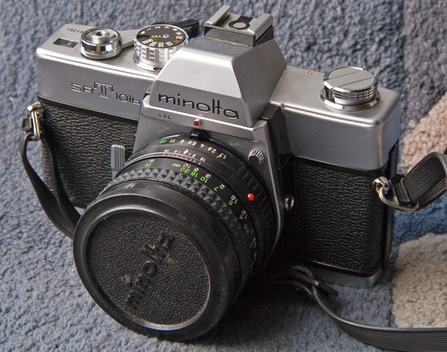 Bereits nach kurzer Zeit jedoch bot mir die kleine Knipsmaschine zuwenig Möglichkeiten. Glücklicherweise wurde damals gerade in meiner damaligen Heimatstadt Bielefeld ein neues Horten-Kaufhaus eröffnet und zu den Eröffnungsangeboten gehörte auch eine Spiegelreflexkamera von Minolta – die Minolta SRT-101b mit einem 50mm-Normalobjektiv.